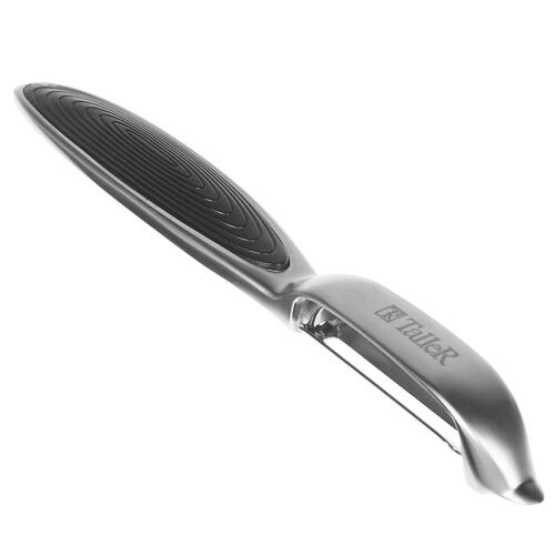 Выполненные из цинкового сплава лезвия Taller TR-5110 не утратят режущие свойства, а также не огорчат появлением коррозийного налета на протяжении всего эксплуатационного периода. Предусмотренная на корпусе вставка воспрепятствует постоянному скольжению овощечистки в руках. Аксессуар подходит для снятия кожуры как с овощей, так и с фруктов. А его небольшие размеры обеспечат возможность хранения в любом месте вашей кухни.