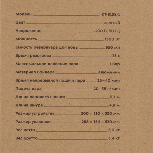 Пароочиститель Kitfort КТ-9158-1 желтый [9035467]