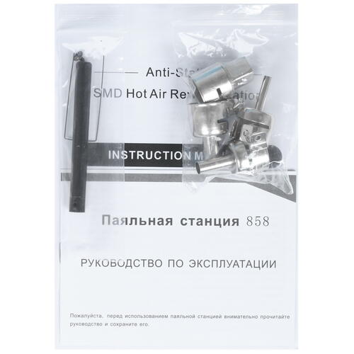 Термовоздушная паяльная станция ELEMENT 858D потребляет в процессе своей работы 700 Вт электроэнергии, благодаря чему обеспечивается производительность нагнетателя воздуха на уровне 120 л/мин. Рабочая температура фена регулируется в диапазоне от 100 до 450 градусов. В качестве нагнетателя воздуха используется бесщеточный термофен. Дополнительное удобство при использовании паяльной станции обеспечивает подставка для паяльника, предусмотренная в конструкции. Функционирующий от электросети с напряжением 220 В аппарат комплектуется четырьмя насадками: тремя круглыми и одной квадратной. Размеры паяльной станции - 100x150x138 мм (ширина, длина и высота соответственно), вес равен 1.5 кг.