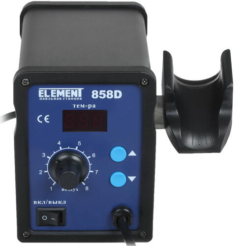 Термовоздушная паяльная станция ELEMENT 858D незаменима при пайке разных электронных компонентов, располагающихся на печатных платах: например, PLCC, SOIC, BGA, QFP и пр. Пользователь обеспечен более точным контролем рабочего процесса благодаря цифровому дисплею, предусмотренному в конструкции устройства. На разогрев фена потребуется совсем немного времени - около 3-5 секунд. Широкий спектр применения представленной паяльной станции обеспечивает максимальная температура нагрева, достигающая 450 градусов.