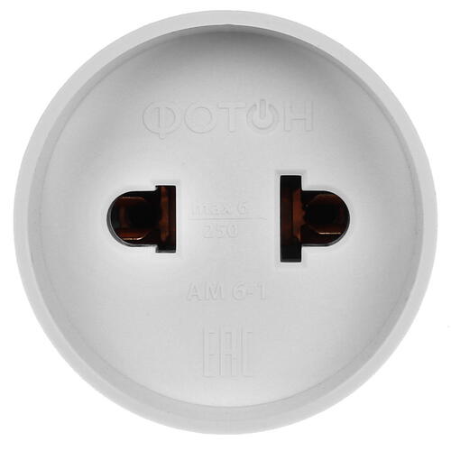 Переходник Фотон АМ 6-1 в белом корпусе из ABS-пластика состоит из одной розетки с максимальной мощностью нагрузки 1500 Вт и током до 6 А. Устройство служит для подключения бытовых и электронных приборов с евровилкой к традиционной российской розеткой, что делает его полезным в быту. Корпус переходника Фотон АМ 6-1 термоустойчивый и ударопрочный. Простое и понятное устройство работает с частотой 50 Гц и номинальным напряжением 250 В. Когда переходник не используется, он займет минимум места на полке или в шкафу.