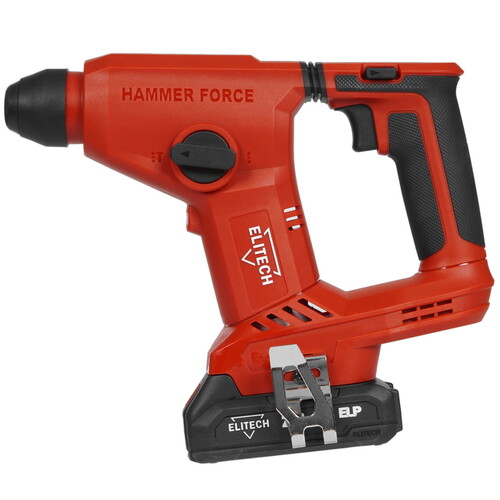 Перфоратор Elitech ПА 2012СЛ работает от аккумулятора с напряжением 20 В. Прорезиненная вставка на рукоятке предупреждает проскальзывание ладони и обеспечивает надежный захват прибора. Регулировка частоты вращения позволяет работать с материалами различной твердости.