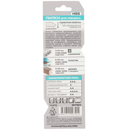 Пилки для лобзика METALLICA Optima T127D предназначены для пиления листового алюминия, профилей, полимерных материалов.