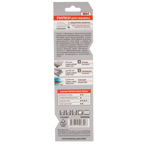 Пилки для лобзика METALLICA Ultra T318AF — биметаллические удлинённые пилки для пиления металлических тонкостенных профилей, листовой стали и цветных металлов, композиционных материалов, пакетов материалов.