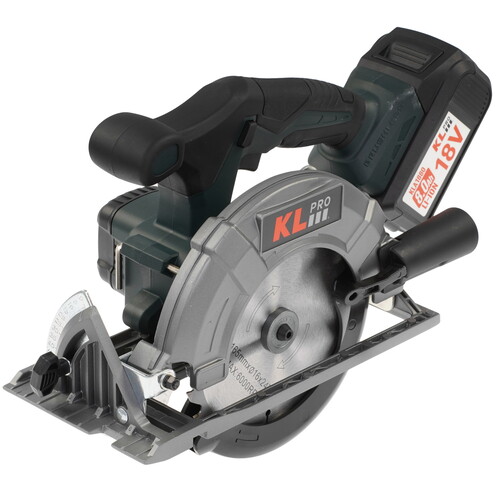 Пила дисковая KLPRO KLDAT18B-80 получает питание от аккумулятора. ЗУ и 2 батареи есть в комплекте.
