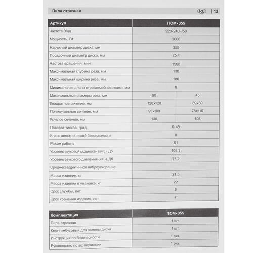 Пила отрезная Зубр ПОМ-355 [9963659]