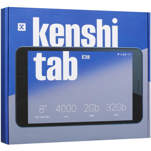 В планшетном компьютере KENSHI E38 есть камеры с разрешением 2 Мп и 0.3 Мп. Поддержка звонков и мобильного Интернета реализована при помощи встроенного модуля 3G со слотом для одной карты SIM. Также в планшете есть беспроводные интерфейсы Wi-Fi и Bluetooth, спутниковая навигация GPS. Одного заряда аккумулятора емкостью 4000 мА*ч хватает для 5.5 часов автономной работы в режиме просмотра видео.