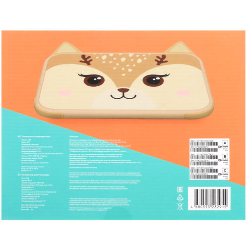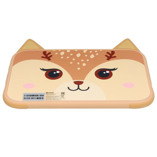 Планшет KENSHI Kids H20 LTE 64 ГБ благодаря продуманной эргономике удобен в использовании. Он выполнен в пластиковом корпусе с рисунком на тыловой стороне и ушками на верхней части. На экране диагональю 8" с матрицей IPS передается четкое изображение с естественной цветовой палитрой. Для видеообщения установлена фронтальная камера 0.3 Мп.
