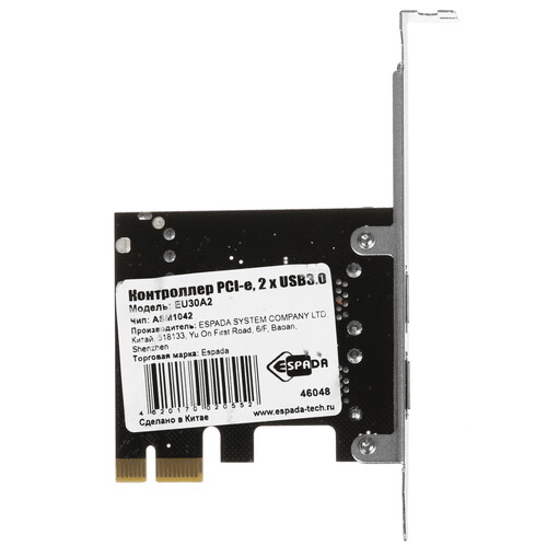 Контроллер ESPADA EU30A2 PCI-e, добавляет к вашему ПК порты USB 3.0 для подключения внешних устройств, таких как внешний диск, флешки и мультимедийные устройства.
