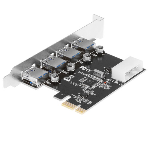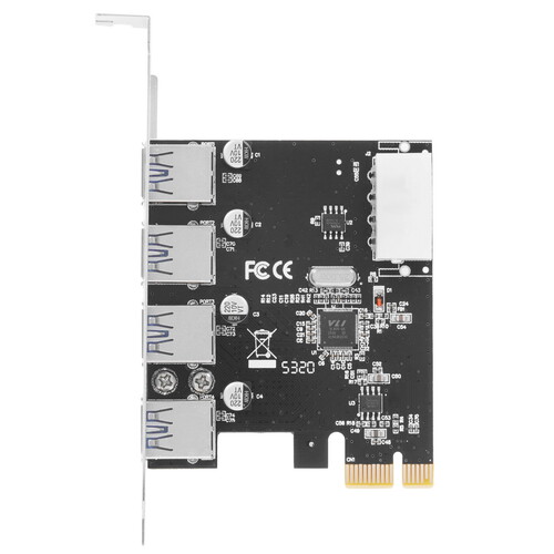 PCI Express контроллер версии USB 3.2 Gen1x1, обеспечивает скорость передачи данных до 5Гбит/сек. Внутренний разъем для подключения дополнительного питания от блока компьютера (Molex) - позволяет получить дополнительную мощность от USB 3.0.