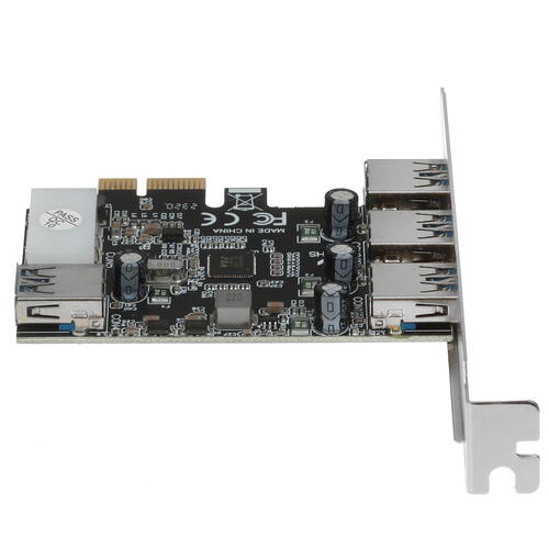 Контроллер с внешними USB-разъемами ExeGate EXE-367 использует интерфейс материнской платы PCI-E x1 для подключения. Он стане удачным решением, если вы хотите подключать к своему системному блоку больше периферийного оборудования разного назначения. Для обеспечения программной совместимости с основными компьютерными ОС плата расширения укомплектована компакт-диском с ПО.
