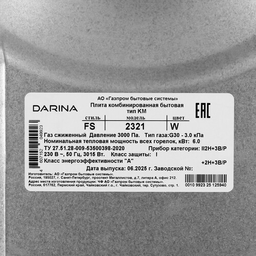 Комбинированная плита DARINA FS 2321 W белый [9277349]