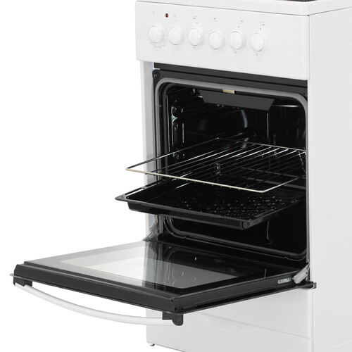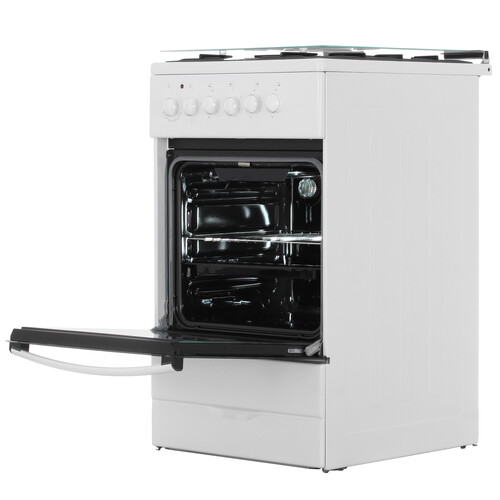 конфорок газовых - 3 шт, электрических - 1 шт, духовка - 50 л, покрытие - эмалированная сталь