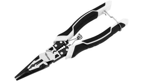 Многофункциональные универсальные тонкогубцы – это инструмент на все случаи жизни включающий в себя: тонкогубцы, бокорезы, инструмент для зачистки кабеля, инструмент для обжима клемм. Используются для ремонта автомобилей, мотоциклов, механизмов и т.д. Применяются для монтажных работ, а также в быту. Плоскогубцы изготовлены из высококачественной хромованадиевой стали (Cr-V). Оснащены износостойкими двухкомпонентными анатомическими рукоятками, которые не скользят в руках. Тип рукояток – японский.