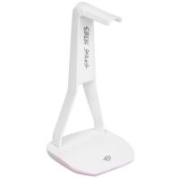 Подставка для наушников DEXP GS Omen изготавливается из АБС-пластика белого цвета и устанавливается на столе. Аксессуар высотой 260 мм подходит для геймера и позволяет эстетично хранить крупные накладные наушники, когда они не используются. В изделие интегрированы элементы многоцветной RGB-подсветки, для которой можно выбрать 7 предустановленных режимов с различными световыми эффектами. При помощи кабеля с оплеткой длиной 1.5 м подставка подключается к USB-порту игрового системного блока.