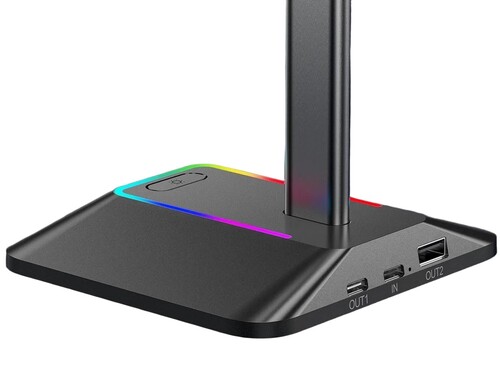 Подставка для наушников New Bee NB-Z8 изготовлена из алюминия, и обеспечивает надежную и стабильную основу для ваших наушников. Подставка оснащена двумя портами USB Type-C и одним USB 2.0, что позволяет заряжать наушники, мобильные телефоны, USB-накопители и другие устройства. Благодаря RGB-подсветке можно выбрать 3 режима освещения. Поддерживает наушники всех размеров.