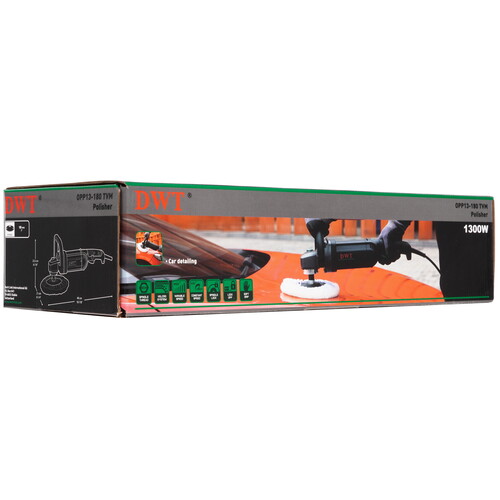Полировальная машина DWT OPP13-180 TVM – полупрофессиональная модель. Подходит для бытовых нужд и работы в автосервисах. Полировочный круг диаметром 180 мм справляется с полировкой крупных деталей: капот, двери и пр. Мощность 1300 Вт и вращение до 3000 оборотов в минуту позволяют полировать и шлифовать металлические, деревянные, полимерные и другие виды поверхностей. Скорость вращения насадки можно регулировать в зависимости от обрабатываемой поверхности, этапа и задачи.