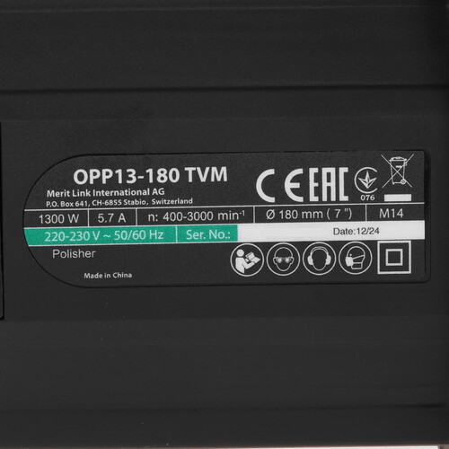 У полировальной машины DWT OPP13-180 TVM есть функция стабилизации оборотов под нагрузкой. Она дает неизменную скорость вращения насадки вне зависимости от нагрузки и сложности обрабатываемого участка.