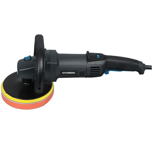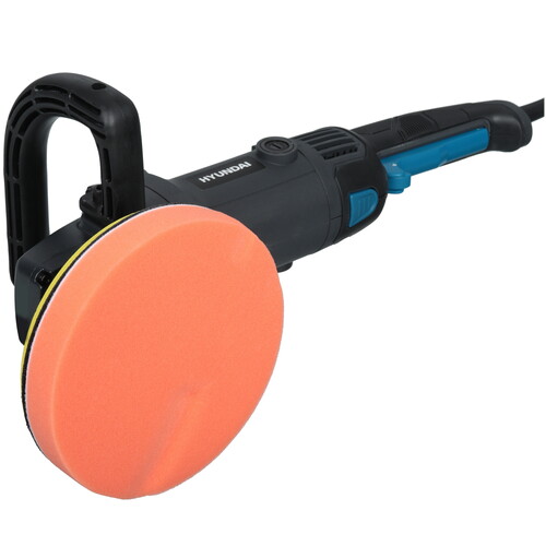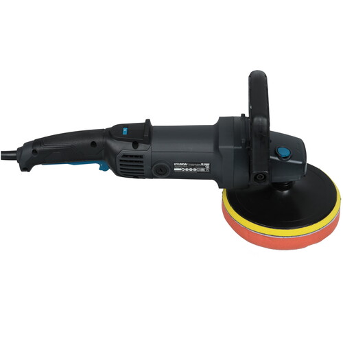 Внешне похожая на УШМ полировальная машина Hyundai HD-1400CP оснащена удобными для удержания в любом положении ручками. Инструмент совместим с оснасткой диаметром 18 см и предназначен для полировки разных поверхностей. Система плавного пуска защищает двигатель от перегрузок. Есть регулятор скорости для аккуратной обработки разных типов материалов.