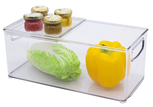 Органайзер можно расположить на емкости для холодильника Berkana. Органайзер вставляется в емкость и может перемещаться по боковым ребрам, словно на колесиках – это помогает сэкономить место в холодильнике. Изделие выполнено из высококачественного прозрачного пластика, которое отличается долговечностью, а также не впитывает запахи и не содержит вредных веществ. Абсолютно безопасно в использовании.