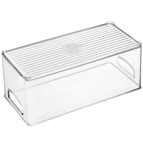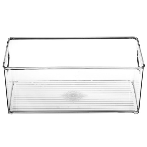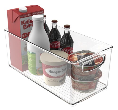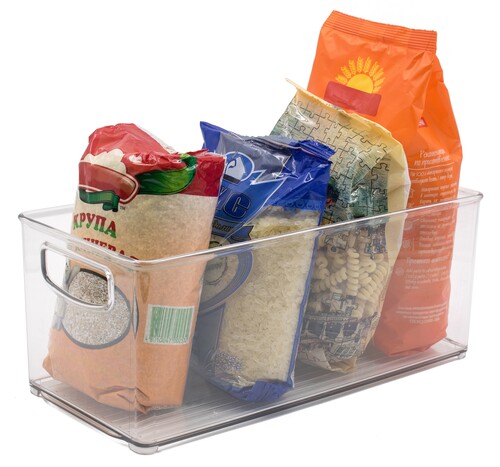 Уникальность изделия в том, что оно вместительное, но не занимает много места. Прозрачность емкости для холодильника позволяет увидеть, что вы положили внутрь, но при этом не доставая изделие из холодильника. Высота емкости позволяет хранить высокие банки и упаковки. На боковых стенках находятся отверстия-ручки для удобного извлечения и помещения емкости. Изделие выполнено из высококачественного пластика, которое отличается долговечностью, а также не впитывает запахи и не содержит вредных веществ. Абсолютно безопасно в использовании.