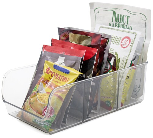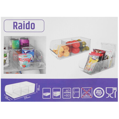 Органайзер BEROSSI Raido подходит для установки в холодильник или на кухонный стол. Лоток удобен для хранения приправ и подобных мелочей. Прозрачные стенки упрощают поиск нужного предмета внутри органайзера.