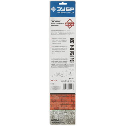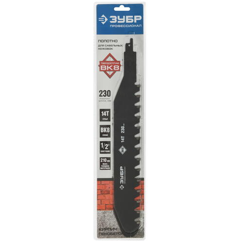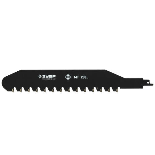 Полотна ЗУБР для сабельных электроножовок изготовлены из качественной высокоуглеродистой стали с использованием высокоточных технологий заточки твердосплавных зубьев.Полотно применяется на сабельной электроножовке МОЩНОСТЬЮ НЕ МЕНЕЕ 1000Вт при резке лёгкого пенобетона, строительного кирпича и гипсокартонных плит.