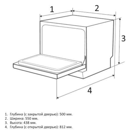 расход воды - 5 л, кол-во комплектов - 6, кол-во корзин - 1 шт, дисплей, защита от протечек, 43.8 см х 55 см х 50 см
