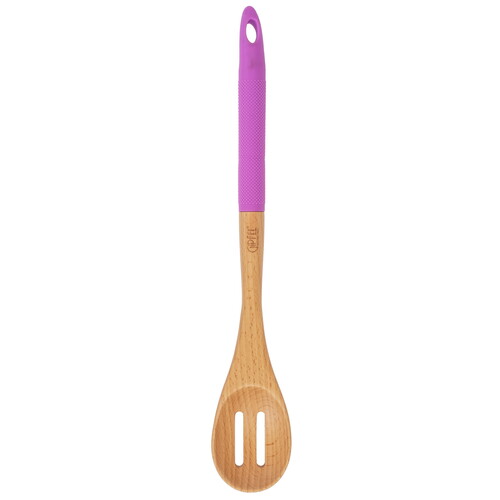 Ложка с прорезями Gipfel Emilie 2873 делает удобным процесс перемешивания ингредиентов, снятия пены, бланширования овощей, извлечения продуктов из жидкости. Чашеобразная рабочая часть с отверстиями изготовлена из дерева. Она выдерживает нагрев до 180 °C, не впитывает запахи и жир, не выделяет вредных веществ при контакте с продуктами.