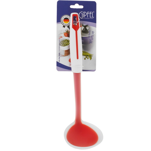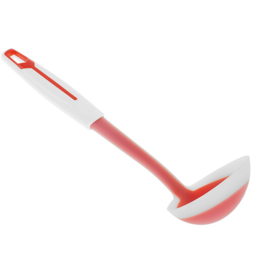 Пластиковая ручка с нескользящим покрытием обеспечивает комфортное удержание. На верхней части предусмотрено отверстие для подвешивания на крючок. Половник Gipfel Motive 2868 можно мыть в посудомоечной машине.