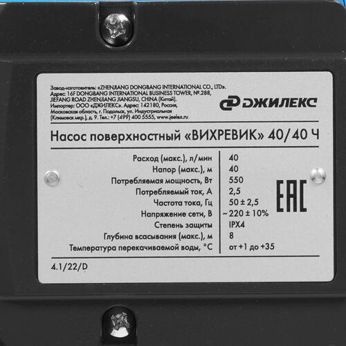 Поверхностный насос ДЖИЛЕКС ВИХРЕВИК 40/40 Ч [9909144]