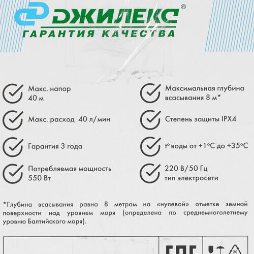550 Вт, 40 л/мин, поверхностный, механизм насоса - вихревой, 9.9 кг