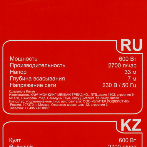 600 Вт, 45 л/мин, садовый, механизм насоса - центробежный, 5.4 кг
