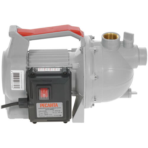 Самовсасывающий поверхностный насос Ресанта ПСН-3600П подходит для перекачивания чистой воды. Жидкость может содержать твердые частицы диаметром не более 5 мм, быть нагретой до 35 °C. Мощность 900 Вт позволяет работать на глубине 9 м и создавать напор до 45 м.