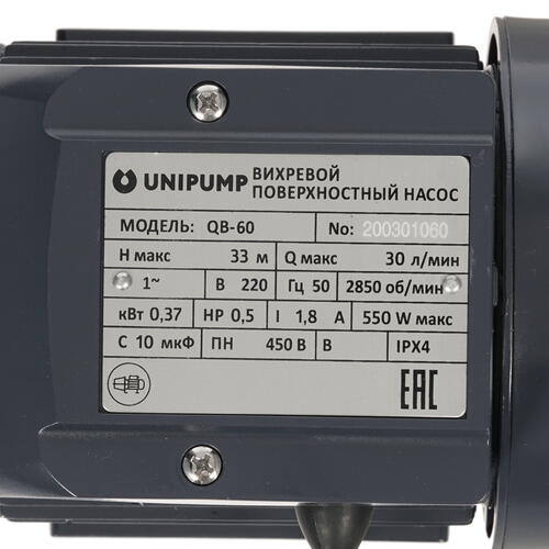 Поверхностный Насос Unipump QB 60 – мощный и надежный инструмент, предназначенный для подачи чистой воды из таких источников, как: скважины, колодцы и автоматические системы водоснабжения. Центробежный насос вихревого типа обладает высокой производительностью на уровне 30 л/мин. Из особенностей модели отмечаются глубина забора максимум 5 м и допустимый напор 33 м. Металлический корпус насоса Насос Unipump QB 60 с защитой по стандарту IPX4 гарантирует надежность в эксплуатации и устойчивость к негативным воздействиям внешней среды.