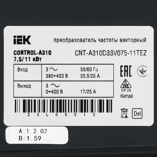 Преобразователь частоты IEK CONTROL-A310 (CNT-A310D33V075-11TEZ) IP20 [9104779]