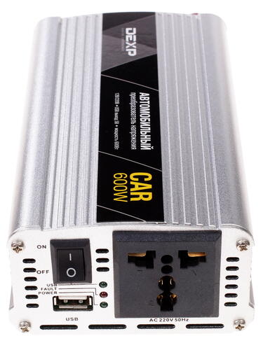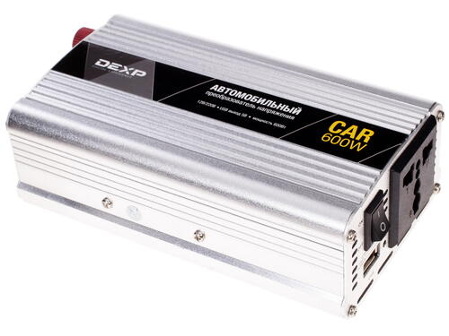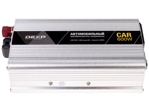 DEXP CAR 600W изготовлен из металла (алюминия). Данный металл, несмотря на небольшой вес, надежно защитит хрупкие детали инвертора от механических повреждений, что продлит эксплуатационный срок прибора. На корпусе DEXP CAR 600W имеется стандартная розетка и порт USB.