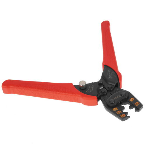 Пресс-клещи КВТ ПК-6м 78865 с клиновидными профилями предназначены для работы с наконечниками всех типов, которые характеризуются сечением в пределах 1.5-6 мм². Конструкция инструмента с храповым механизмом обеспечивает эффективный процесс выполнения обжима с минимальными усилиями и качественный результат за короткий промежуток времени. Общая длина инструмента составляет 175 мм. В КВТ ПК-6м 78865 установлены пластиковые рукоятки с нескользящим прорезиненным покрытием, что обеспечивает комфортный и надежный хват. Среди других особенностей отмечается винт для простой разблокировки рабочей части.