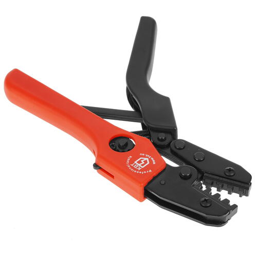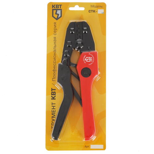 Пресс-клещи КВТ СТК-04 56541 предназначен для выполнения опрессовки автоклемм двойным лепестковым обжимом. Он оборудован 4-позиционной матрицей и предусматривает работу с автоклеммами, обладающими сечением в пределах 0,5-2,5 мм². Храповый механизм блокирует обратный ход до момента завершения обжима и оснащен разблокировкой. Благодаря усиленной стальной конструкции обеспечивается стойкость к повреждениям и износу, а рукоятки эргономичной формы с прорезиненным покрытием позволяют максимально комфортно и надежно удерживать инструмент КВТ СТК-04 56541.