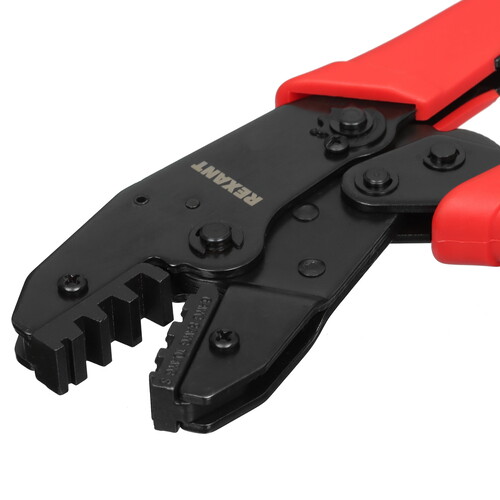 Пресс-клещи REXANT HT-301S – кримпер для обжима штыревых наконечников с площадью поперечного сечения 6, 10 и 16 мм. Инструмент оснащен съемными обжимными губками из стали, которые произведены методом микролитья. Точность прижимного усилия матриц обеспечивает регулятор. Опрессовку упрощает храповой механизм. Корпус изделия изготовлен из хромованадиевой стали высокой прочности.