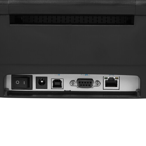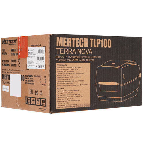 MPRINT TLP100 TERRA NOVA поддерживает работу с компьютером и другими устройствами под управлением iOS и Windows. В корпусе есть сетевой разъем Ethernet RJ45, порты для подключения к ПК RS-232 и USB. Принтер с разрешением 300 dpi четко отображает мелкий текст, цифры, QR- и разные типы штрихкодов. ОЗУ 32 МБ и 16 МБ встроенной памяти хватает для исправной работы устройства.