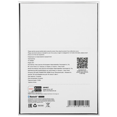 Принтер этикеток NIIMBOT B21 в корпусе зеленого цвета поддерживает интерфейс Bluetooth для синхронизации со смартфоном, ноутбуком или планшетом. Компактное устройство позволяет напечатать этикетки для банок со специями, косметикой, чаем. Скорость печати достигает 45 мм/сек.