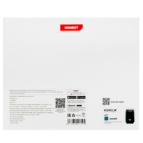 NIIMBOT K3 поддерживает работу с компьютером и другими устройствами под управлением Windows и Android. Модель оснащена модулем Bluetooth и портом USB для выбора удобного способа подключения. Принтер с разрешением 203 dpi четко отображает мелкий текст, цифры, QR- и разные типы штрихкодов.