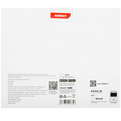 NIIMBOT K3 поддерживает работу с компьютером и другими устройствами под управлением Windows и Android. Модель оснащена модулем Bluetooth и портом USB для выбора удобного способа подключения. Принтер с разрешением 203 dpi четко отображает мелкий текст, цифры, QR- и разные типы штрихкодов.