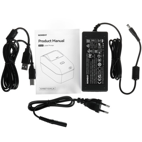 Принтер этикеток NIIMBOT K3 печатает со скоростью 180 мм/сек и подходит для домашнего использования. Устройство в настольном белом корпусе с питанием от сети не занимает много места на рабочем столе. Принтер можно заправлять лентой шириной до 82 мм при диаметре втулки 25.4 мм или 40 мм.
