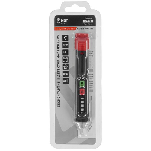 Бесконтактный детектор напряжения КВТ КТ 90 PROLINE – ваш надежный помощник для безопасной работы с электричеством. Этот профессиональный прибор от проверенного производителя обеспечивает точное определение напряжения без прямого контакта.