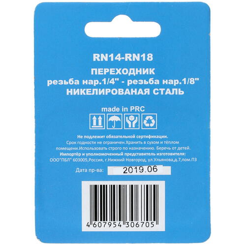 Устройство Concorde RN14-RN18 производится из никелированной стали, отличающейся повышенной устойчивостью к деформациям. Адаптер имеет естественную серую расцветку и поставляется в количестве одного предмета. Переходник не вызывает сложностей в монтаже, и также быстро снимается для разбора конструкции или замены элемента.