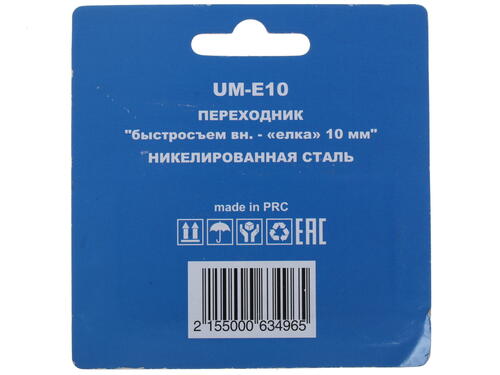 При производстве штуцера Concorde UM-E10 была использована никелированная сталь, отличающаяся высокой коррозионной стойкостью и стойкостью к механическим воздействиям. Упаковка изделия представляет из себя компактный блистер, имеющий отверстие для подвешивания. Вы сможете ознакомиться с внешним видом штуцера без распаковки.
