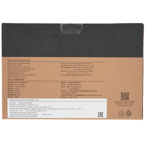 Насадка на кран Xiaomi Faucet Water Purifier 2 подходит для жесткой и мягкой воды, температура которой не превышает 50 °C. Приспособление задерживает органические и хлорорганические соединения.
