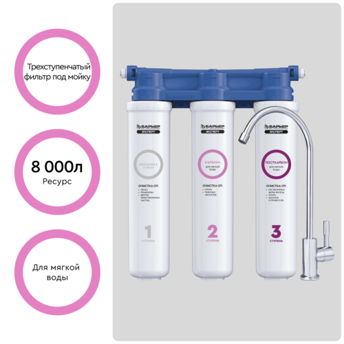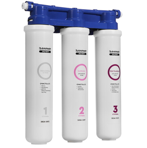 Проточный питьевой фильтр Барьер Эксперт Слим для мягкой воды обеспечивает скорость фильтрации 2 л/мин. Поддерживаются 3 ступени очистки. Допустимый диапазон давления в системе – от 2 до 7 ат.
